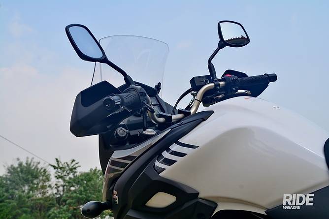 계기반은 V-STROM 1000의 것이 그대로 사용됐다. 레이아웃이 다소 산만한 감이 있지만 기능이나 시인성에 있어서는 만족스럽다.