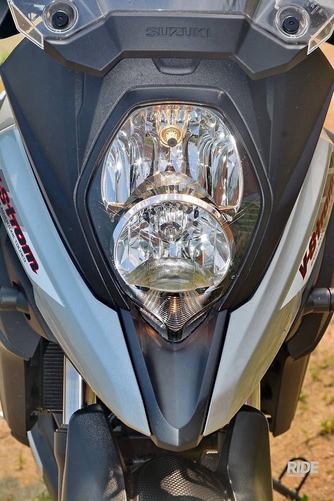 듀얼 헤드라이트 역시 V-STROM 1000의 세로형 헤드라이트로 변경되었고 1000cc 모델의 것과 흡사한 디자인의 부리를 사용했다. 덕분에 기존 XT모델의 까마귀를 닮은 둥글둥글한 마스크는 온데간데없이 날카로운 모습이 됐다. 하지만 큼지막한 할로겐 타입 방향지시등은 어색한 모습으로 튀어나와 있다.