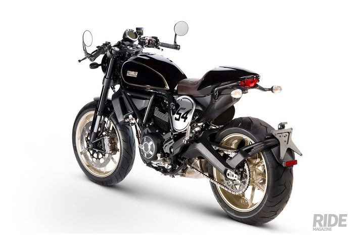 카페레이서 형태의 스크램블러도 나왔다. 이 모델은 전형적인 클래식 레이서를 연출하기 위해 다양한 요소를 조합했는데, 레이서였던 Bruno Spaggiari의 엔트리 넘버 54번을 레터링하는 등 헤리티지를 부여한 것이 특징적이다. 카페레이서형 시트 유니트를 넣었고, 테르미뇨니 사일렌서는 기존 스크램블러 파생 옵션 중 하나였던 풀 스로틀과 유사한 형태다.
