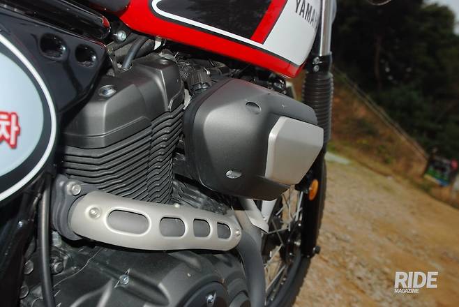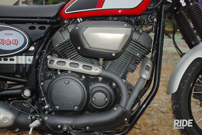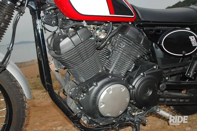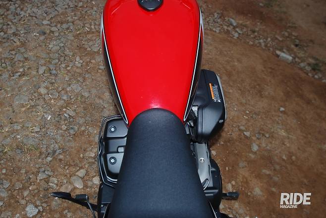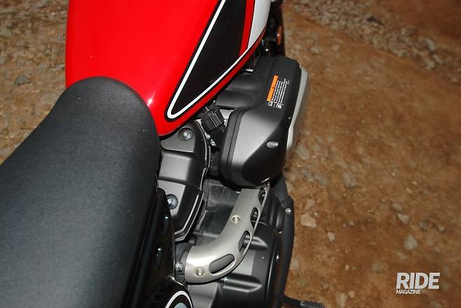 오른쪽에 튀어나온 에어클리너 박스는 독특한 포인트이기도 하지만, 운전자와 밀착이 안 돼 바이크와 일체감을 느끼기 어렵다. 약간 헐렁하게 달리는 게 어울리기는 한다.
