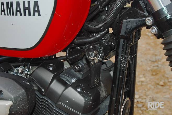 뒷바퀴는 체인이 아니라 케블라 벨트의 힘으로 돌아간다. 탄성이 좋고 변속충격이 작으며 유지관리가 편하다. 편안한 승차감을 중시하는 크루저에 주로 적용하는 방식이다. 오프로드도 달리는 스크램블러에 잘 어울리지는 않는다.