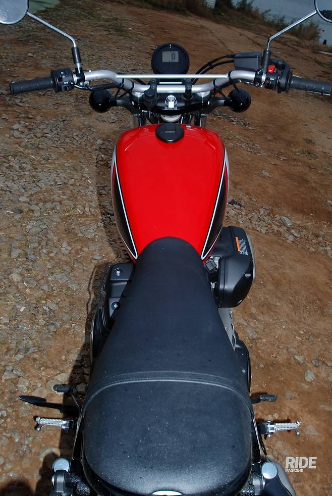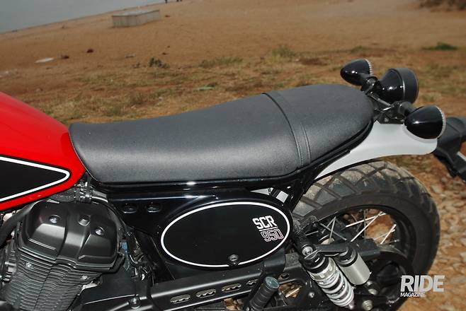 SCR950이 원조인 볼트에 비해 가장 큰 차이점은 라이딩 포지션의 자유다. 평평하며 좁고 긴 시트가 스크램블러만의 장점을 잘 살려주고 있다. 시트 탄성이 강해 착석감은 약간 단단한 편이다.