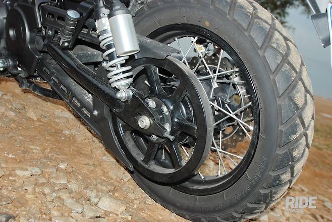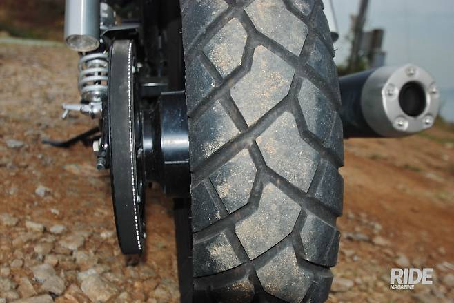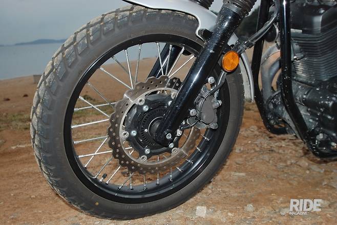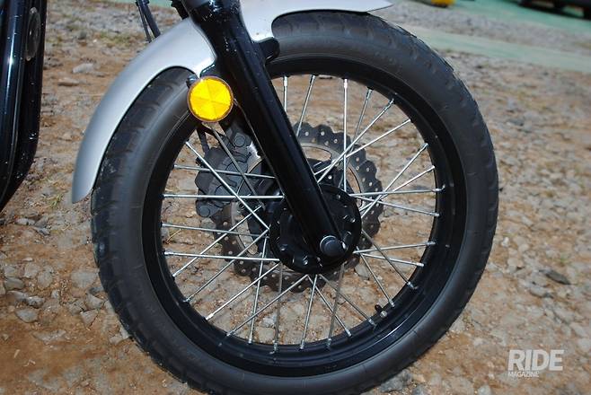 와이어 스포크 휠은 오프로드에서 완충작용을 더하지만, 온로드를 달릴 때는 클래식한 분위기를 꾸미는 역할이 크다.