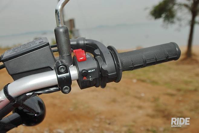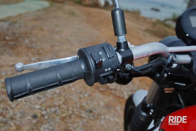 계기반 조작은 우측 핸들 스위치로 한다. 비상등 스위치도 있다. 스로틀 그립은 다소 단단한 느낌이지만 돌기가 크게 나와 있어 미끄럽지는 않다.