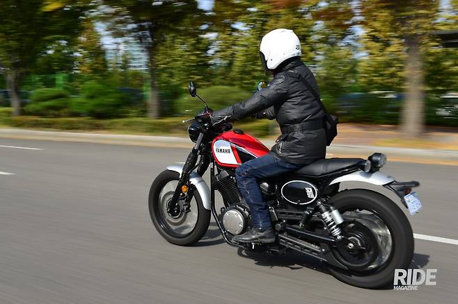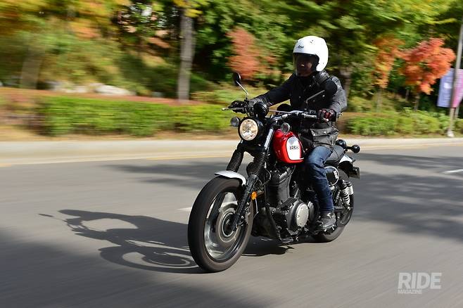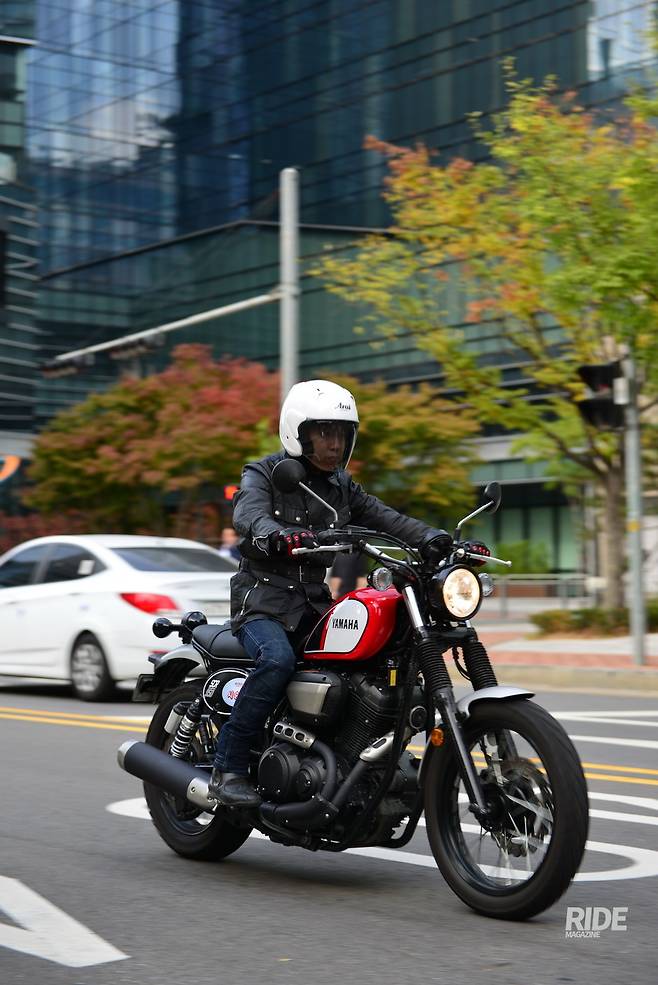 진지함을 버리고 가벼운 마음으로 도심을 달렸다. 볼트가 가졌던 무거운 분위기를 덜어낸 레드 컬러 연료탱크가 산뜻한 분위기를 더했다. 2단, 3단으로 슬슬 달리면서 차량 흐름을 따라가자 평소에 달리던 길도 투어링 로드로 변한다.