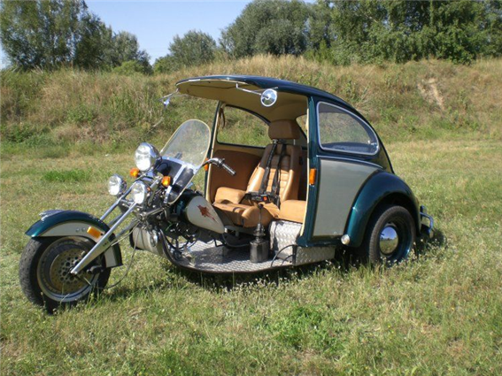 비틀 트라이크! 개인이 제작한 이 트라이크는 폴크스바겐 비틀과 이지라이더를 반씩 잘라 절묘하게 이어 붙였다. 1970년대 시작해 90년대 말까지 마니아 사이에 인기가 대단했다.