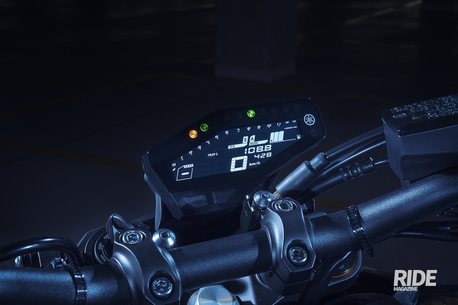 MT-09 SP의 LCD 계기반은 대부분의 일반적인 모터사이클 계기반과 달리 검정색 배경에 흰색 정보를 표시하여 주간 승차 시 높은 수준의 선명도를 제공한다. 이것은 실용적인 이점뿐만 아니라 최근 고사양 모터사이클에 주로 적용되는 트렌드로 세련되고 새로운 느낌을 준다.