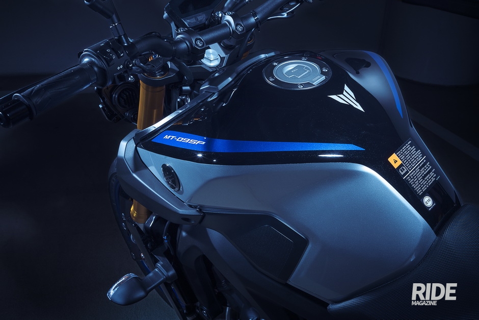 또 MT-09 SP는 프리미엄 사양임을 알리기 위해 최상급 모델인 MT-10 SP의 디자인과 일치하는 Silver Blu Carbon 도장으로 스타일을 마무리했다. 연료 탱크는 파란색과 은빛 컬러와 세련된 MT-09 SP 그래픽, 프론트 펜더에는 파란색/검은색 마감 처리가 되어있고, 헤드라이트 카울과 시트 카울은 은색으로 칠해져 있어 스탠다드 사양 모델과 차별화시켰다.