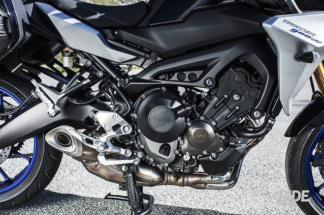 GT의 엔진 스펙은 MT-09 트레이서와 비교해 바뀌지 않았다. 847cc 3기통 수랭 4밸브 엔진이다. 이 엔진은 저속부터 부드러운 토크가 솟아져 나와 흡사 4기통같이 부드러우면서도 심심하지 않은 특성을 가졌다. 꾸준히 샘솟는 토크는 고회전까지 부드럽게 이어져서 100마력 이상의 출력을 금새 뽑아낸다. 더 큰 체급 투어링 바이크에 비해도 엔진 출력에 대해서는 큰 부족함이 없을 정도다.