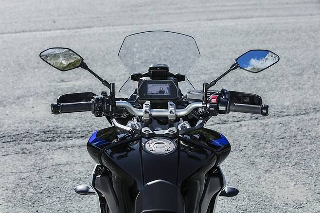 모든 사항을 디지털로 표시하는 고급 계기반은 엔진회전계가 기본으로 배치됐고, 그 아래 속도계, 기어 단수 표시기, 주유계 등 기본 사항은 가장 크게 출력된다. 그리고 현재의 라이딩 모드, 트랙션 컨트롤 수치(TCS), 온도, 히팅 그립 작동여부, 시간, 적산거리계 등으로 모든 정보를 일목요연하게 담았다. 보는 것만으로도 첨단 기계를 소유한 기분이다. 슈퍼스포츠 플래그십 모델에서나 볼 수 있을 것 같은 계기반을 기본 채용했다니 라이더들이 상당히 반길만 하다.