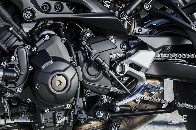 MT-09 SP는 여전히 강력한 직렬 3기통 847cc 배기량의 엔진을 가졌다. 최대출력은 115마력이며 전체 자량 무게는 193kg에 그쳐 강력한 가속감을 선사한다. 어느 시점에서나 직관적이고 날카로운 토크를 가진 크로스플레인 방식으로 스트리트 무대에서 최고의 짜릿한 라이딩 경험을 준다.