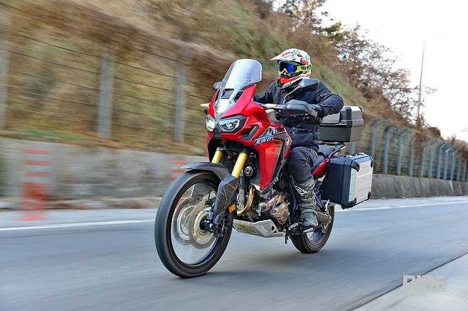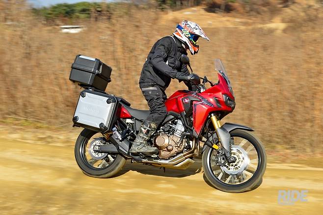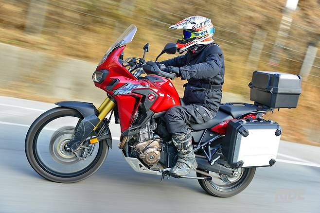 이런 어드벤처 투어링바이크에는 소위 3박스라 불리는 투어링 패키지를 기본으로 생각하는데, 그렇다고 해서 원래 설계 목적의 운동성에 방해가 된다면 정말 아쉬운 일일 것이다. 다양한 어드벤처 바이크를 시승하면서 아프리카 트윈이야말로 밸런스에 영향이 가장 적은 순정 투어링 패키지를 갖고 있다고 확신했다. 사제품이 내구성면에서 뛰어날지 모르나 밸런스 면에서 이 정도까지 운동성을 보존할 수 있을지는 잘 모르겠다.