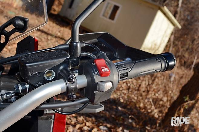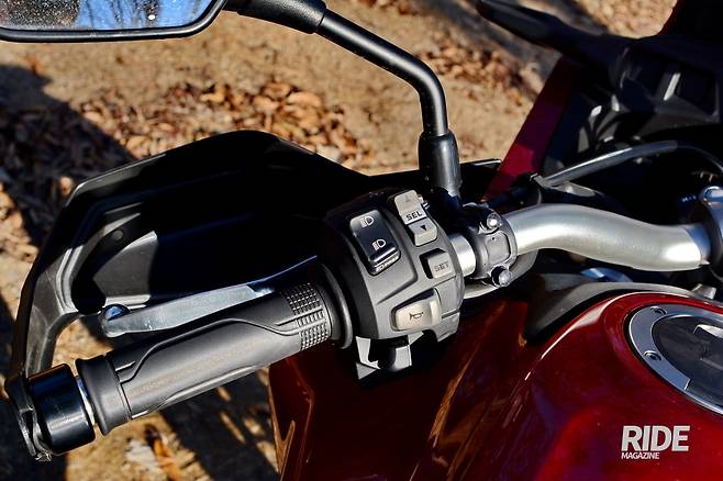 스위치류는 단순한 구성으로 작동이 난해하지 않고 대부분 기능이 분리되어 있어 달리면서도 손으로 더듬어 작동하기가 좋았다. 비상등 스위치는 핸들 오른쪽에, 토크 컨트롤 스위치는 핸들 왼쪽에 있다. 토크 컨트롤은 3단계 중 어느 수준으로 해놓아도 시동을 껐다 켜면 다시 3단계(풀 작동)로 복구되는 기능이 있다. 관계자에 따르면 혼다의 안전 철학과도 관련있다고 했다.