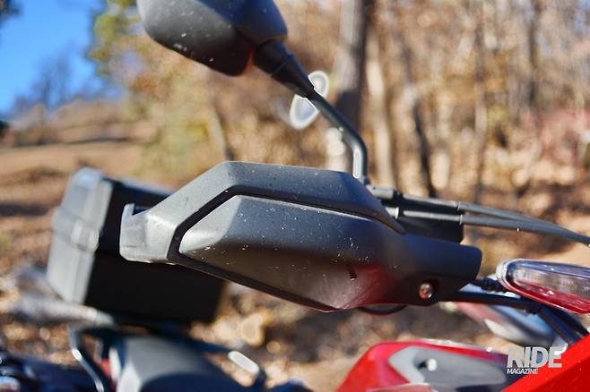 차체는 처음에 말했듯 높이가 높고 폭은 가느다란 이미지다. 윈드스크린의 높이는 아주 적당하다. 추운 맞바람을 잘 흘려보내줬고 그 덕에 영하 온도에서도 직접 바람을 맞는 일은 없었다. 손을 보호하는 핸드가드도 순정이고, 하체 쪽 다리 아래로는 주행풍이 약간 들이쳤지만 목이 긴 라이딩부츠를 신으니 괜찮았다.
