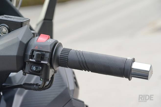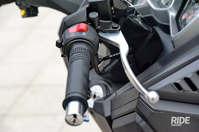 브레이크 레버 터치감은 평범하지만 중형 스쿠터임에도 레버 간격 조절장치가 없다는 점은 좀 아쉽다. 튜닝품목으로 간단히 교체 해결될 수 있는 부분이기는 하다.