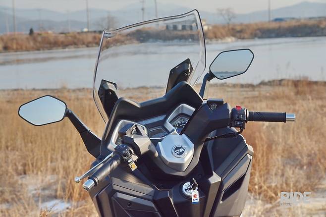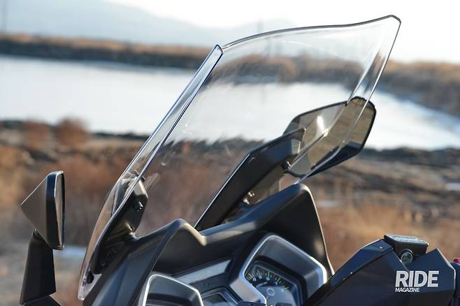 2단계로 수동 조절할 수 있는 이 윈드스크린은 높은 위치로 뒀을 때 거의 투어링 모터사이클에 가까운 수준의 방풍성능을 보여줬다. 높은 방풍성에서 오는 쾌적한 주행능력은, 공기역학적으로 다듬어진 카울링과 더불어 전반적으로 이 스쿠터의 이름이 크루심(CRUISYM)이라는 것에 대한 의구심이 쏙 들어갈만한 장점이다.
