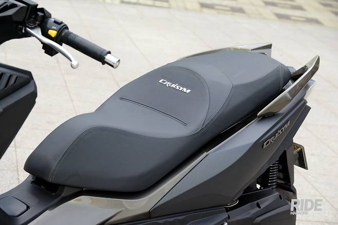 시트는 빅 스쿠터답게 넓고 안락하다. 쿠션감은 탄탄한 편이며 넓이가 넓고 봉제선이 정확히 위치해서 엉덩이를 감싸는 밀착감이 좋다. 요추받침대가 별도로 있지 않지만 장시간 주행에도 불편함이 없었고, 특히 높이가 760mm 수준으로 매우 낮아서 빅 스쿠터 특유의 넓은 시트로 정차시 발을 딛기가 어려운 점을 상당히 해소해 주었다.