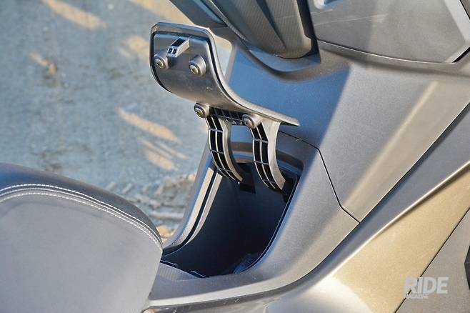 발판은 앞쪽으로 130도로 기울어진 크루징 모드, 평평한 가운데의 일반 모드, 그리고 가속 주행을 위주로 차체를 홀딩하기 위한 액셀레이션 모드로 구성되어 있다. 거창한 설명이지만 쉽게 말하면 투어링 시 편안하게 다리를 앞으로 쭉 뻗거나 혹은 무릎을 굽혀 차체를 홀딩하며 와인딩도 안정감있게 즐길 수 있다는 뜻이다.