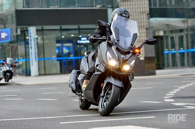 시승차를 처음 인도받았을 때 슬며시 감탄이 나왔다. 조이맥스300i도 충분히 상품성이 높았지만 외모부분에서 더욱 경쟁력을 갖추고자 했다는 것이 단번에 느껴졌다.