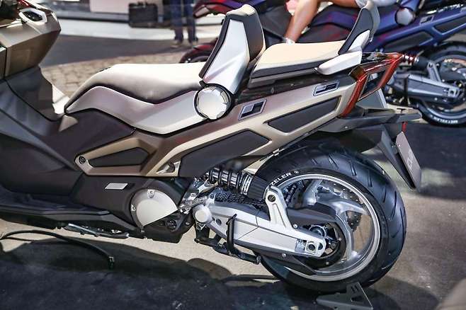 CV2 콘셉트는 스포츠 투어링 맥시 스쿠터 AK550을 기반으로 장거리 투어를 고려한 사양을 더해 만든 투어링 콘셉트 모델이다. 세부적인 스펙은 공개되지 않았지만 높은 완성도를 고려하면 출시에 매우 근접해 있다는 것을 느낄 수 있다. 안락한 라이딩 포지션을 제공하기 위해 도톰한 시트와 각도 조절이 가능한 큼직한 등받이를 적용한다. 동승자석에도 여유로운 크기의 등받이가 적용되는데 재미있는 점은 리어 시트는 별도의 옵션으로 등받이를 장착하거나 또는 리어 탑 케이스를 장착하는 등 목적에 맞게 다양하게 연출할 수 있다는 점이다. 탑 케이스 이외에도 사이드 케이스를 연출하여 장거리 투어 목적을 분명하게 한다. 윈드 스크린도 높이 조절이 가능하다.