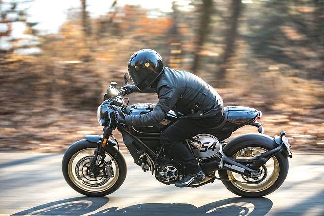 사실 스크램블러와 카페레이서는 클래식 장르의 대표적인 갈래다. 어디든 가고 싶은 데로 달리기 위해 지상고를 높이고 오프로드 설정을 더한 스크램블러와 도심지에서 누구보다 빠르기 위해 발전한 카페레이서 장르는 출발 지점부터 다른 유전자를 갖고 있다. 하지만 두카티 카페레이서는 이 두 장르의 접점의 교묘하게 이어 재미있는 어떤 것을 만들어 냈다. 카페레이서를 품은 스크램블러, 처음에는 이해하기 어렵지만 두카티 스크램블러 카페레이서를 한 번 경험해 본다면 고개를 끄덕이게 될 것이다.