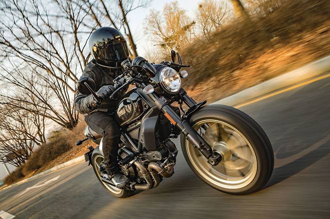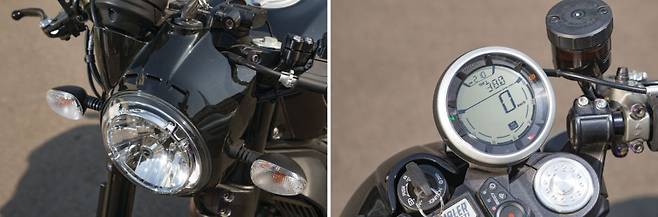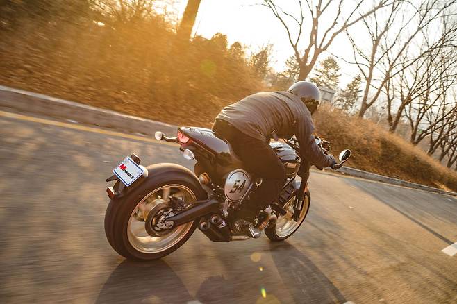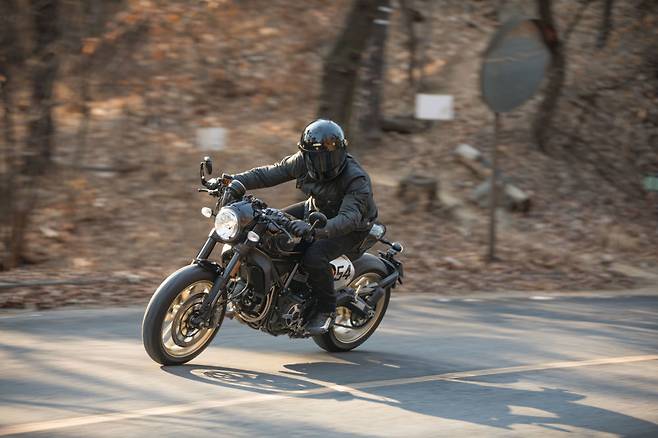 떼르미뇨니 머플러의 박력 있는 배기 사운드도 마음에 든다. 순정이기 때문에 너무 요란하지 않고 리드미컬하다. 동일한 803cc 공랭 L트윈 엔진을 사용하지만 포지션에 따라 완전히 다른 바이크처럼 느껴지는 게 재밌다. 브레이크도 한 단계 업그레이드된 사양으로 330mm 세미플로팅 디스크와 브렘보 래디얼마운트 4피스톤 모노블럭 M4 캘리퍼가 조합된다. 레버 조작에 따라 섬세하게 반응하지만 제동력 상승은 직관적이라 이해하기 쉽다.