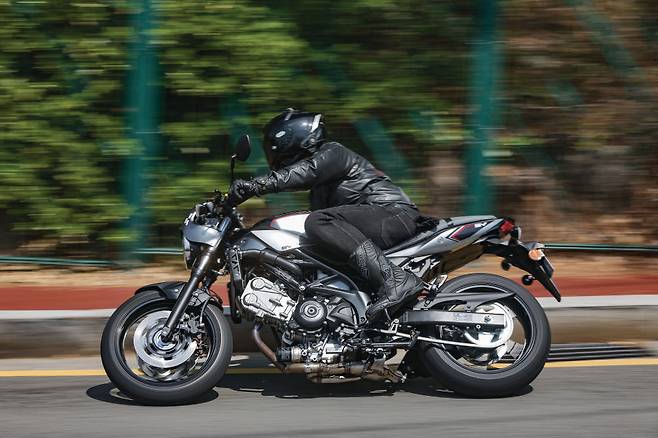 타보기 전에는 그저 외형만 달라진 것이라 생각했는데 기본적으로 재미의 포인트가 다른 모델이었다. 핸들링은 한없이 자연스러운 SV650과는 다르게 느껴진다. 포지션 차이 때문에 프런트에 무게가 더 실리는 것도 그렇고 좁고 낮아진 덕분에 프런트 휠이 노면을 감아나가는 느낌이 더 직관적으로 전달된다. 이 때문에 처음에는 살짝 어색하게 느끼기도 했다. 완성차의 느낌이라기 보단 개인에게 맞춰 커스텀 된 차량의 느낌이랄까? 하지만 이내 적응이 되고 와인딩로드를 달려보니 공격적인 라이딩도 상당히 잘 어울린다. 코너를 돌아나가는 내내 프런트와 리어의 그립을 진하게 느낄 수 있어 마음 놓고 빠르게 달릴 수 있었다. 의외로 본격적인 달리기 성능에 입가에 미소가 번진다.