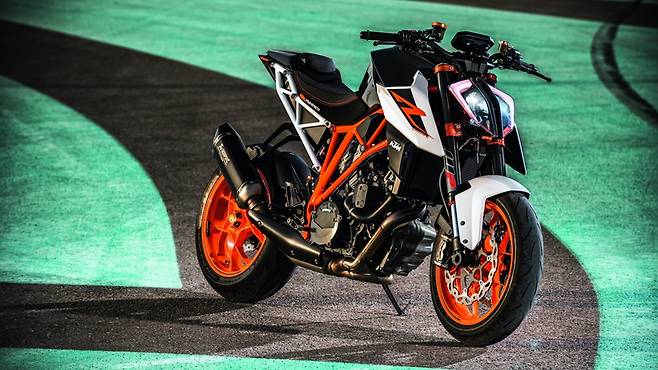 KTM의 1290 슈퍼 듀크 R은 슈퍼 네이키드 장르에 속한다