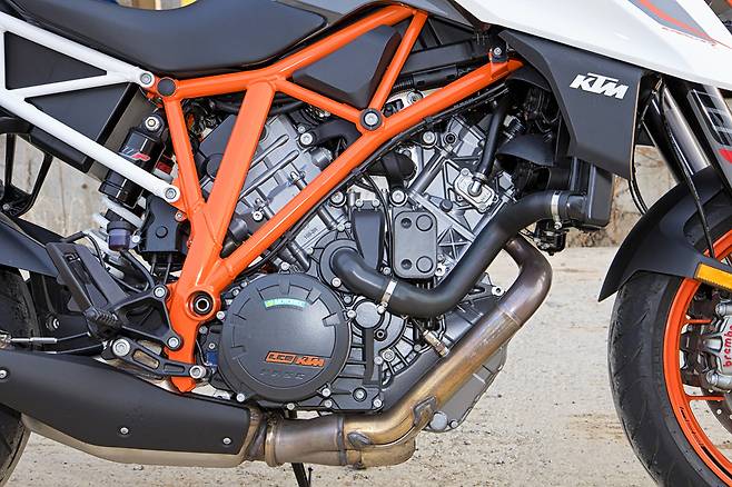 1290 슈퍼 듀크 R의 엔진은 협각 75도의 V형 2기통