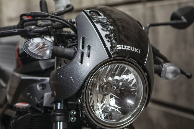 흰색으로 칠해진 경쾌한 느낌을 더하며 블랙과 실버 레드의 조합은 이 콘셉트에서부터 출발했다. 70년대 감성의 비키니 카울과 금속 프런트 펜더, 안개등을 헤드라이트 좌우측에 배치해 독특한 인상을 만든다. 또한 바 엔드 미러로 레트로 분위기는 고조시키고 낮은 실루엣을 제대로 연출할 수 있었다. 2-1-2 방식의 요시무라 머플러 역시 고전적인 분위기를 더한다.