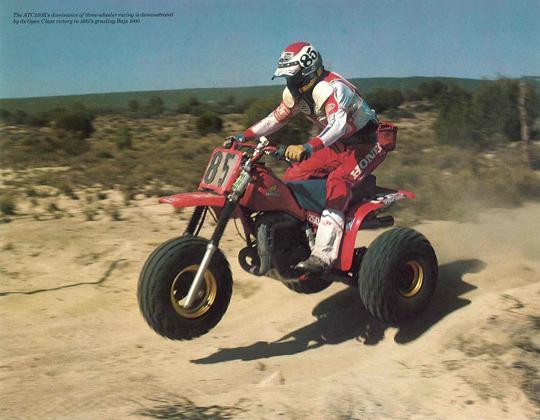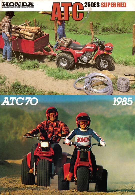 1981년 출시된 혼다 ATC시리즈는 뒷바퀴가 두 개인 바이크였다. All-Terrain Cycle이라는 뜻으로 어린이용 세발자전거와 비슷하게 생긴 ATC는 다양한 엔진을 장착해 여러 버전이 발매됐다. 이미 혼다는 1969년부터 바퀴가 세 개인 바이크들을 만들어 오고 있었지만 ATC는 목적이 확실했다. 모래 같은 푹푹 빠지는 곳에서 탈 수 있는 바이크를 만드는 것이었다. 두텁고 폭이 넓은 타이어를 장착하고 엔진은 중저속 토크 위주로 세팅했다. 레저용으로 개발되었지만 큰 관심을 보인 것은 북미시장이었다.