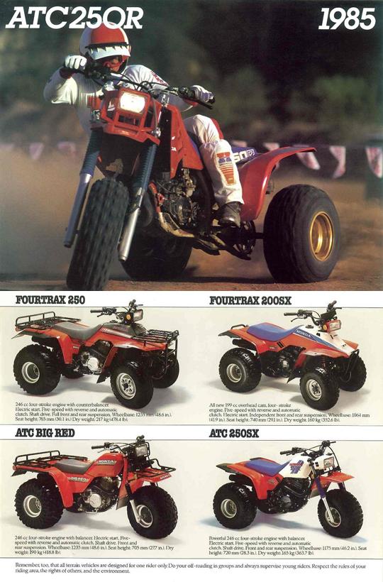 어린이용 70cc부터 110, 200cc, 2스트로크 249cc 엔진을 장착한 250R, 350X까지 여러 버전이 인기를 끌었다. 특히 250R은 레이스까지 열리며 북미 전역으로 퍼져나갔다.