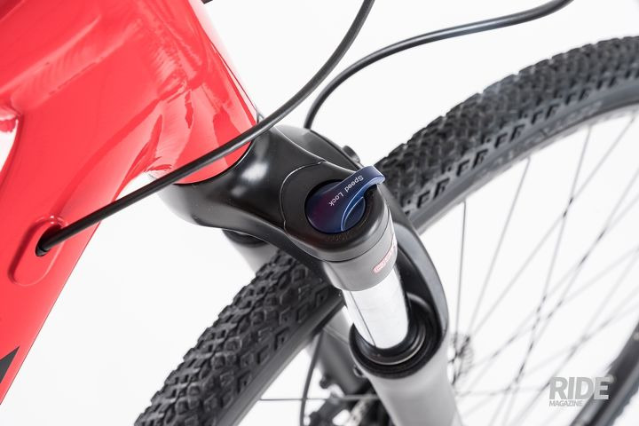 서스펜션 포크는 일반적인 하이브리드에서 찾아 볼 수 없는 만큼 DS 고유의 개성을 표현해 주는 중요한 포인트다. 일상적으로 만날 수 있는 비포장도로에서 충분히 활용 가능한 코일스프링 방식의 SR 썬투어 NEX 서스펜션 포크가 적용되었으며 63mm 트래블이다. 또한 유압식 락아웃 기능이 내장되어있어 도로를 주행할 땐 단단한 승차감으로 힘 손실을 최소화하고 비포장도로에서 더욱 안락한 라이딩을 경험할 수 있다.